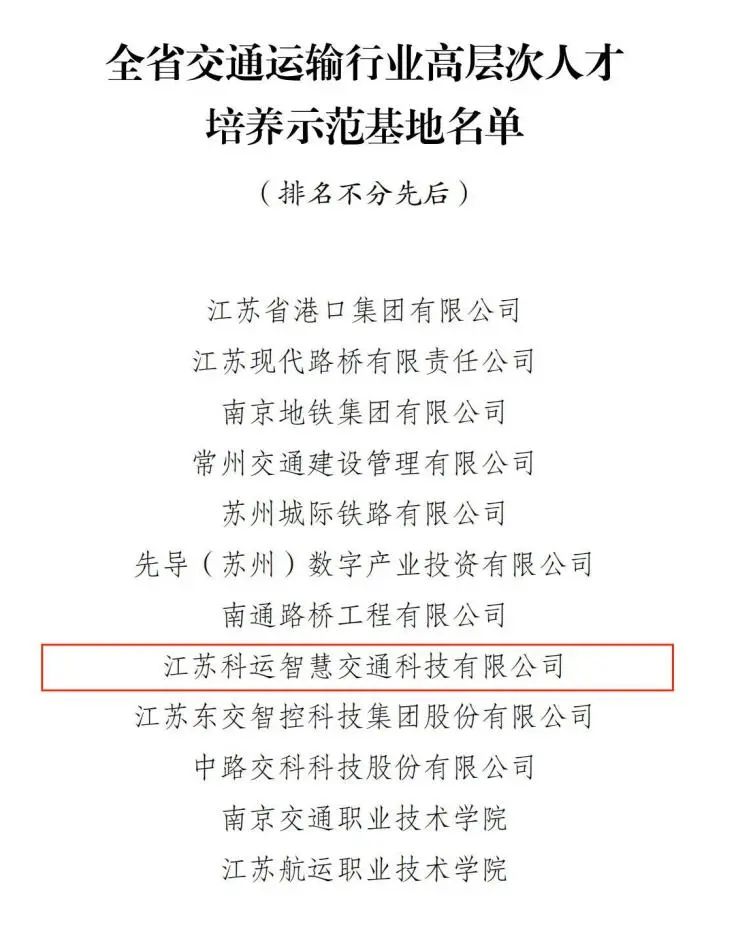 蘇交科 · 江蘇科運(yùn)智慧榮獲“全省交通運(yùn)輸行業(yè)高層次人才培養(yǎng)示范基地”稱號(hào)