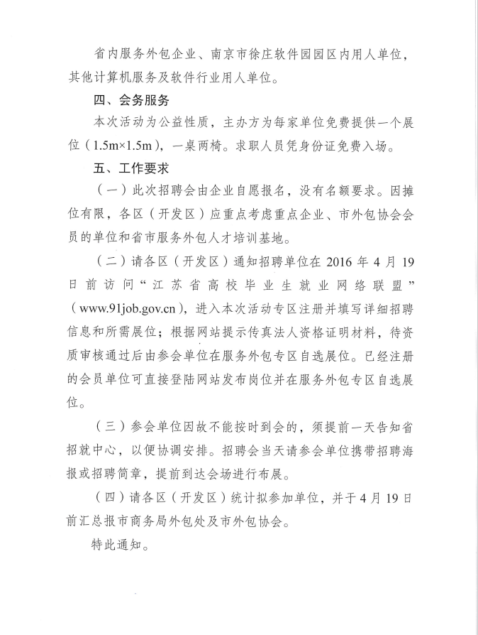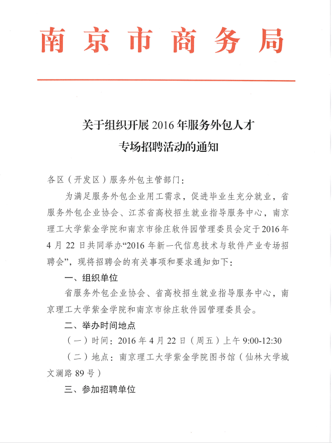 關于組織開展2016年服務外包人才專場招聘活動的通知