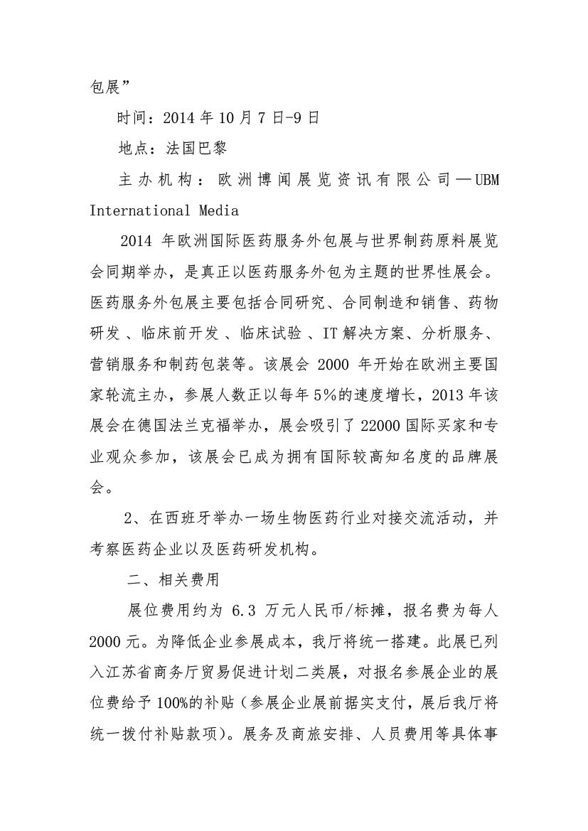 關(guān)于組團(tuán)參加法國(guó)國(guó)際醫(yī)藥服務(wù)外包展并赴西班牙進(jìn)行醫(yī)藥外包市場(chǎng)開拓活動(dòng)的通知
